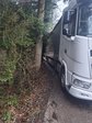 Ein Sattel-LKW steckte auf einer engen, kurvigen Straße fest und konnte weder vor noch zurück.