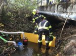 Aus einer Güllegrube trat aus bisher noch ungeklärter Ursache Gülle aus, welche direkt in den angrenzenden Bach floss. Unsere Aufgaben bestanden darin Dämme zu errichten, dadurch den Bach aufzustauen und weiters die Gülle mittels Tauchpumpen und unserer Tragkraftspritze aus dem Bach zu pumpen bis dieser trocken gesaugt war.